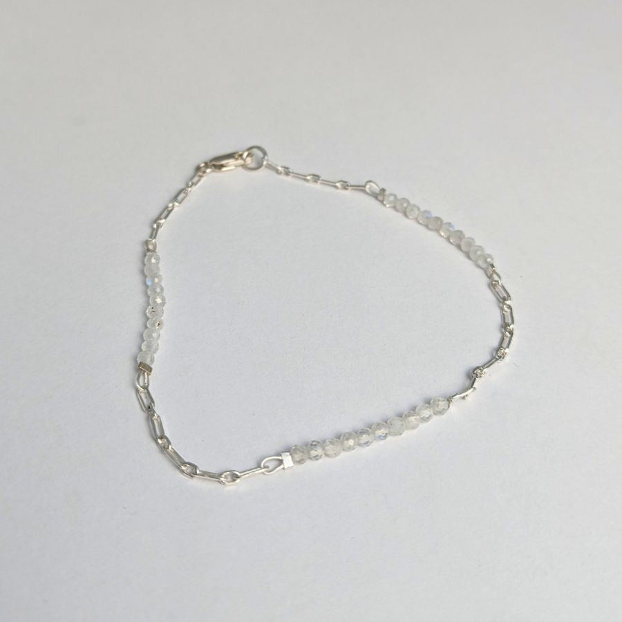 Accented Chain Bracelet: Polished Sterling Silver & Moonstone