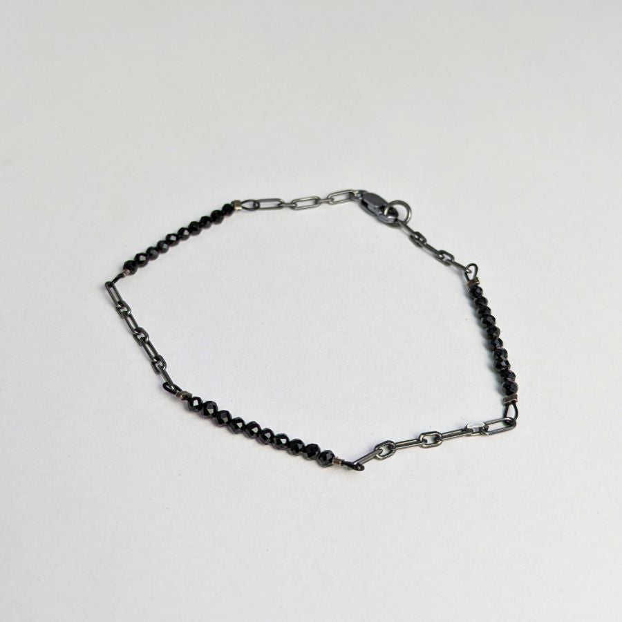 Accented Chain Bracelet: Oxidized Sterling Silver & Black Spinel