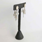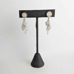 The Mother of Pearl Unis Studs are a fun earring with sparkle and movement. The circle stud features mother of pearl inlay with a mixture of large quartz and small beryl (aquamarine and morganite) beaded chain connected to the ear nut closure.
