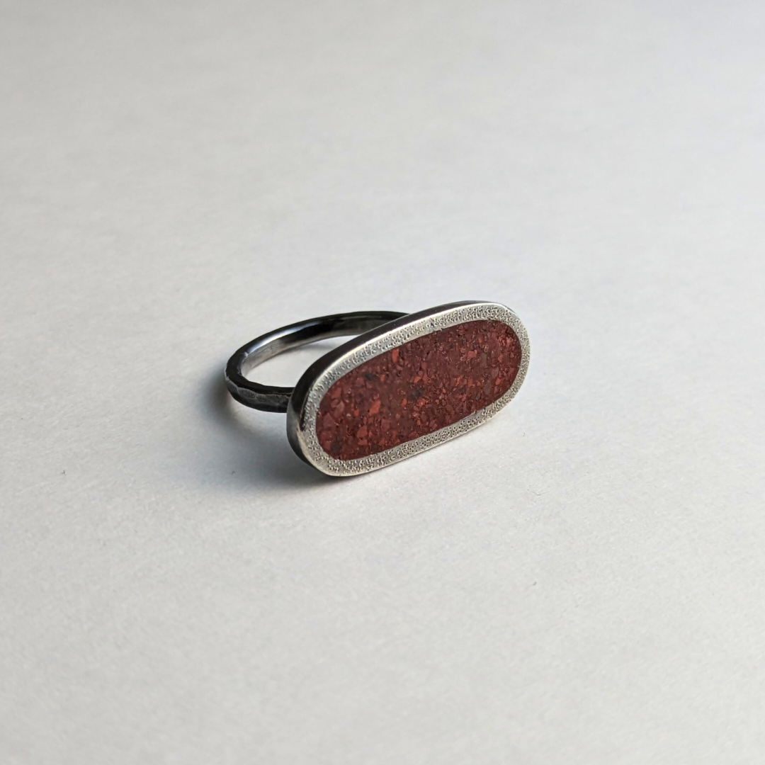Ready to Ship: Jasper Horizontal Oval Ring in oxidized sterling silver. If another ring size, inlay color or metal finish is desired, please check out our Horizontal Oval Ring through the shop.