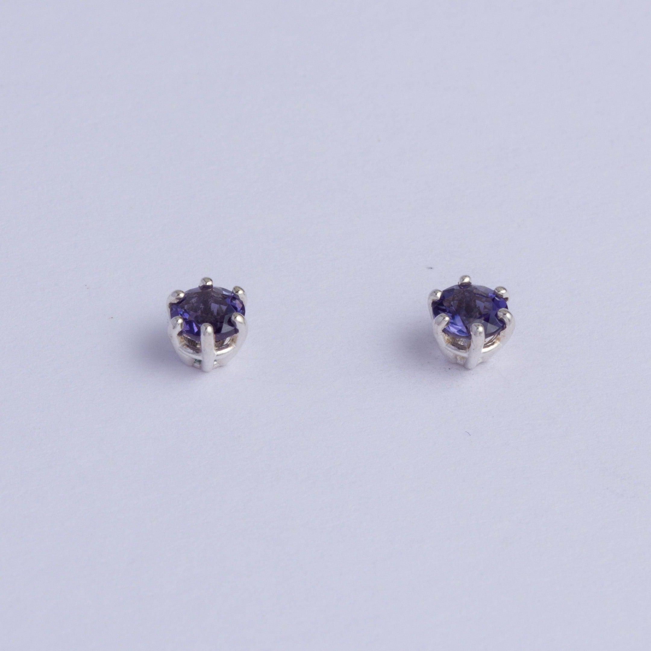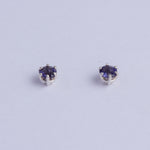 Ready to Ship: Six Prong Studs with 4mm Iolite in polished sterling silver. If another size or gemstone is desired, check out our Six Prong Studs through our Shop.