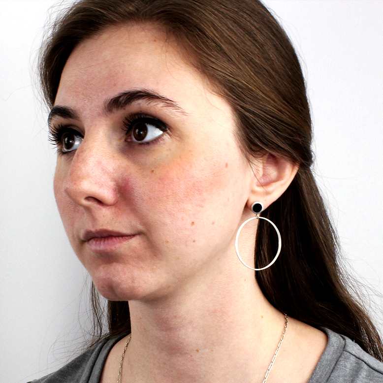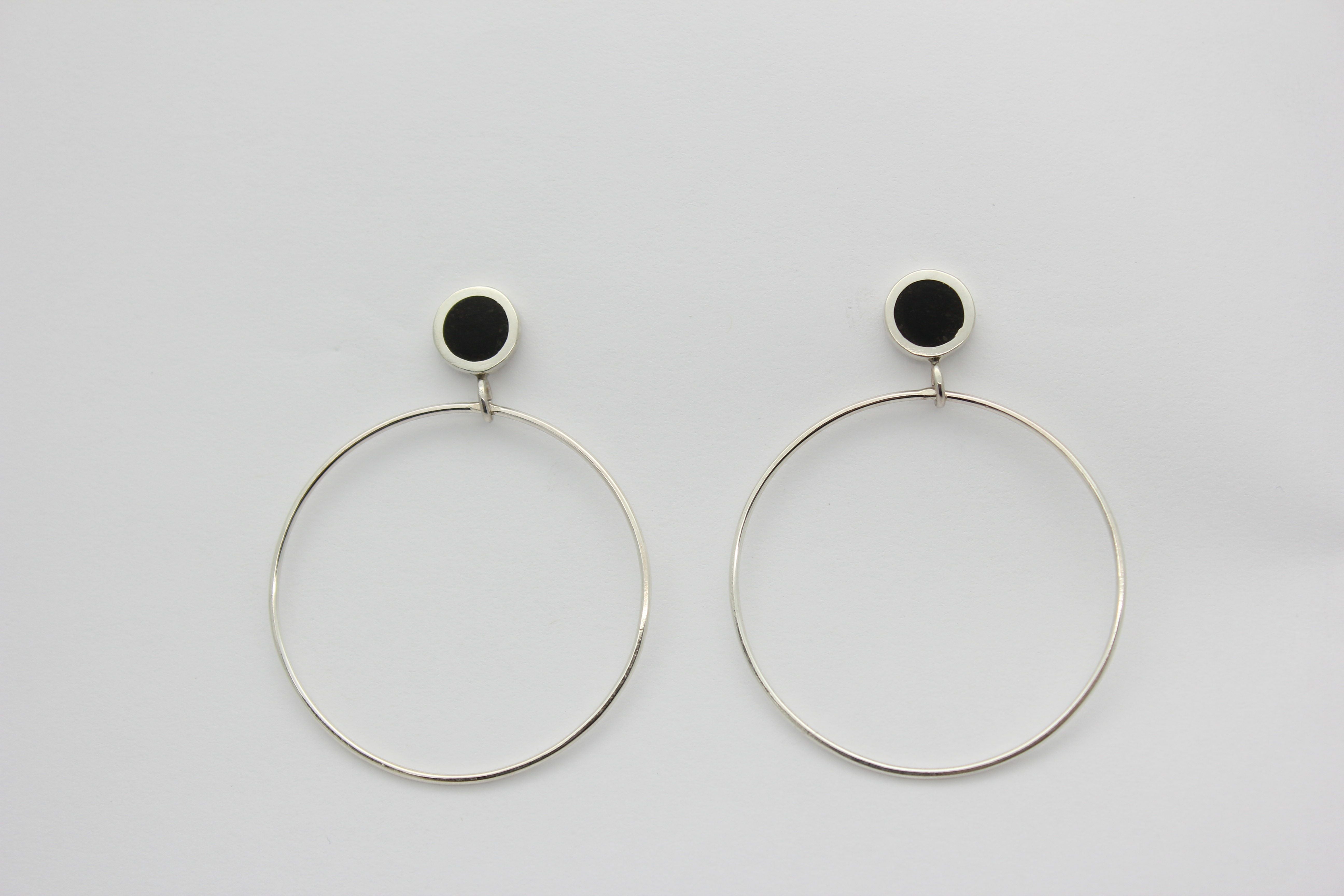 Pictured on Model: Large studs with Black Jet stone inlay in polished sterling silver.